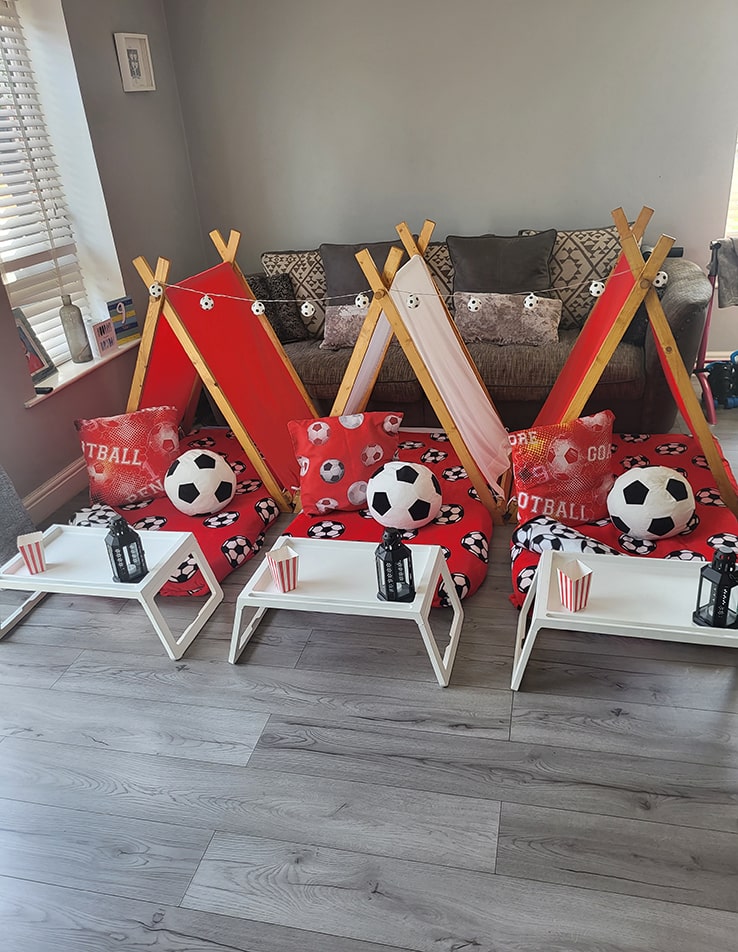Enternaing kids corners with choice of teepees, soft play and retro arcade machine.